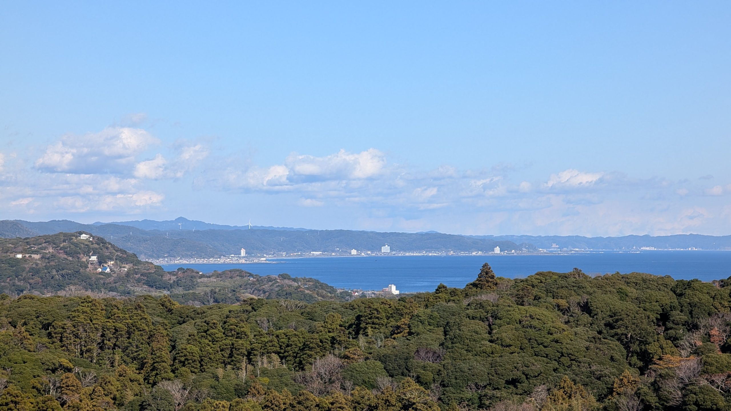 We saw the Mineoka range, the JSDF radar dome on Mt. Atago, and Kamogawa beach from an angle we’d never encountered before. On the signboard at the peak, we learned there is a mountain called Hiratsuka-yama, though it seems to be not in our Hiratsuka neighborhood.