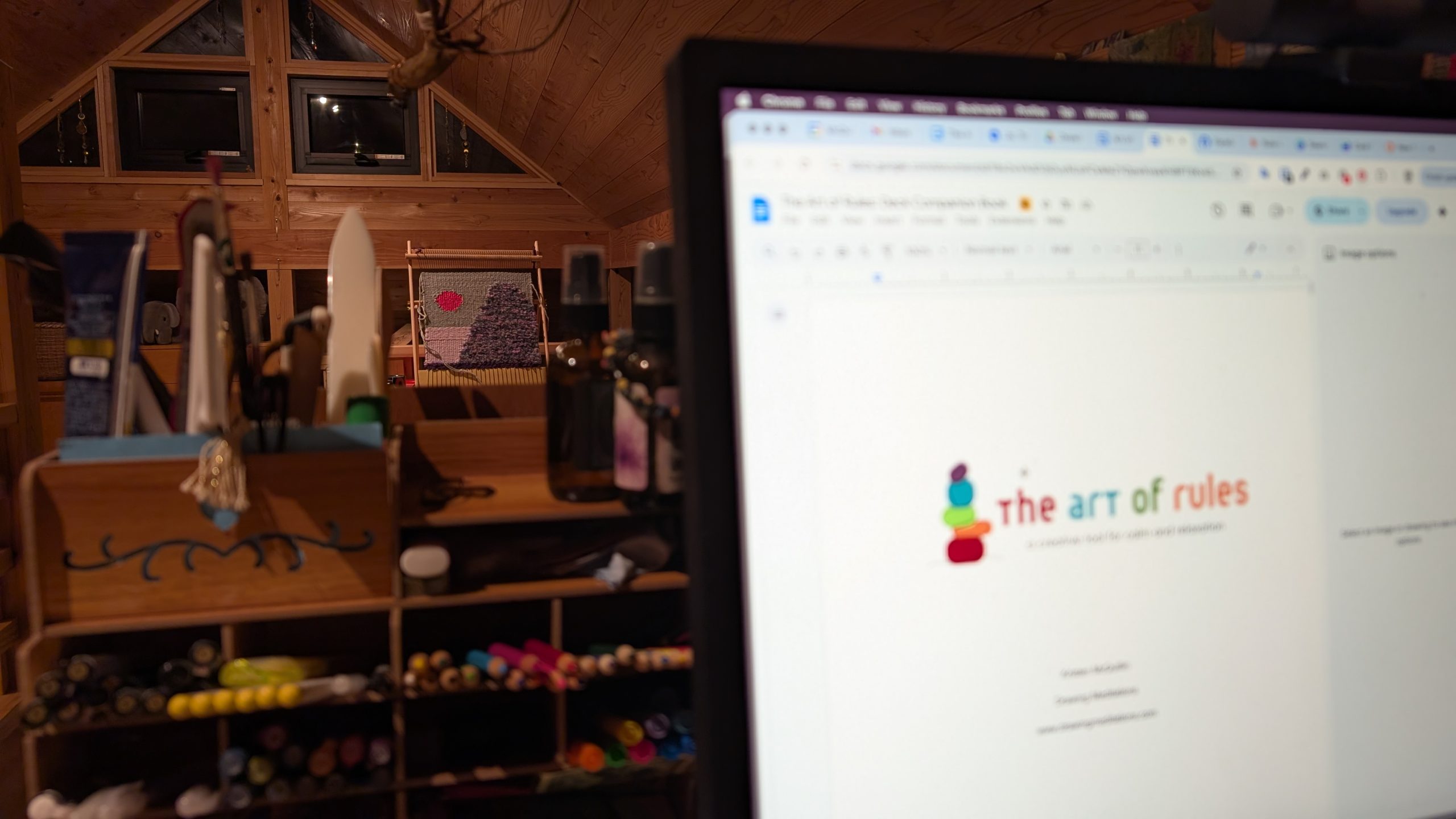 This year, I’ve just completed an online drawing class that I picked up at Christmas. The tapestry I started earlier this month is almost finished. And I’ve been putting together a new workbook for Drawing Meditations called The Art of Rules. It comes with cards.