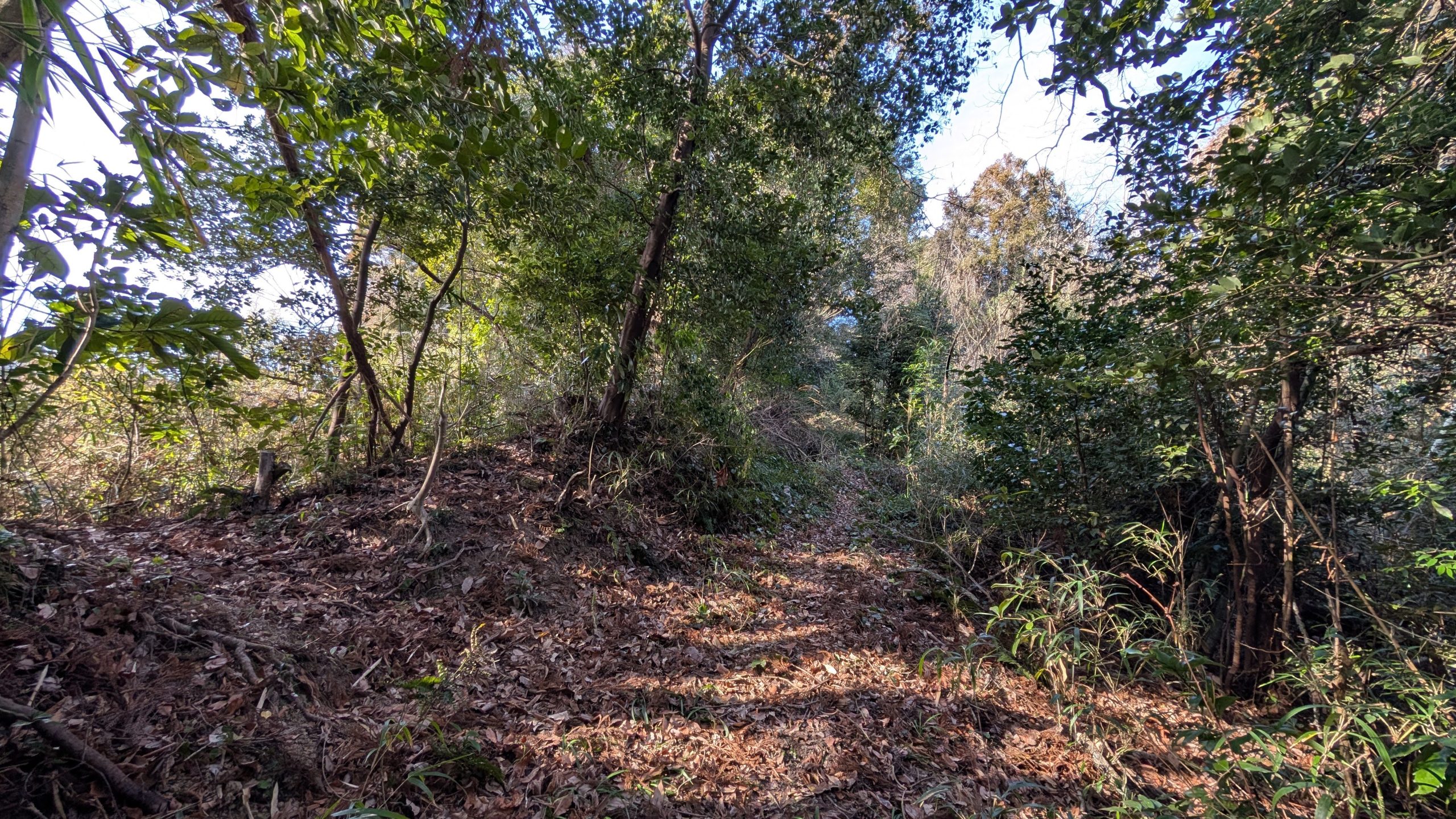 I opted to take one of my favorite routes to the top of the little mountain to the east. I stopped by at the bamboo playground for a ride on the swing, observed a few fallen trees and then hiked over to the base of the steep hill.